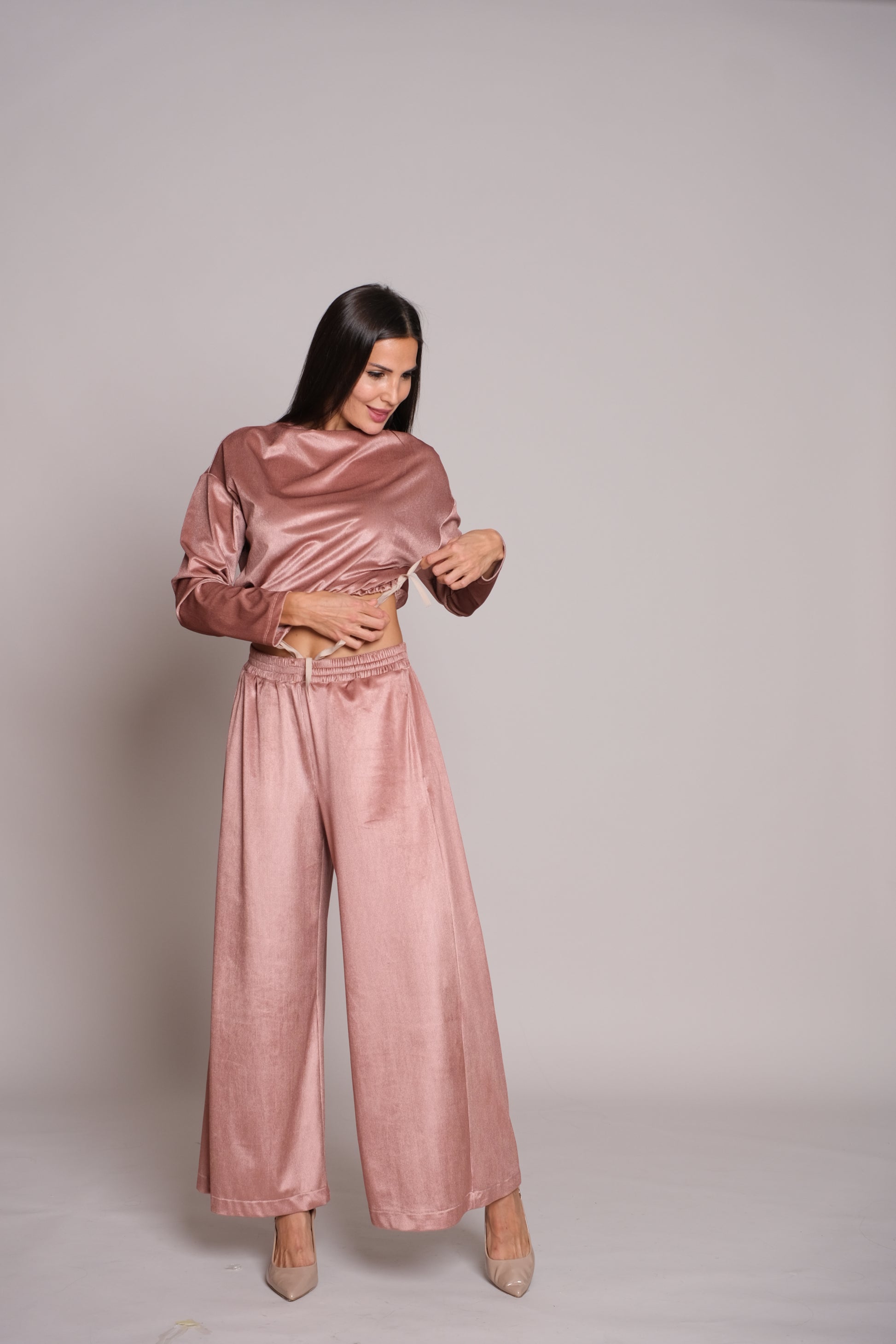Непринудена изтънченост с топа Velora Top Dusty Rose. Изработен от същия изключително мек плат с кадифена текстура, той предлага луксозно усещане и ежедневна универсалност. Свободната кройка пада елегантно, а скритата връзка на талията ви позволява да регулирате дължината и силуета – носете го свободно за лекота или пристегнато за по-оформен вид. Едновременно удобен и изискан, този топ се вписва без усилие както в ежедневието, така и във вечерни комбинации със съвременен спортен акцент.
