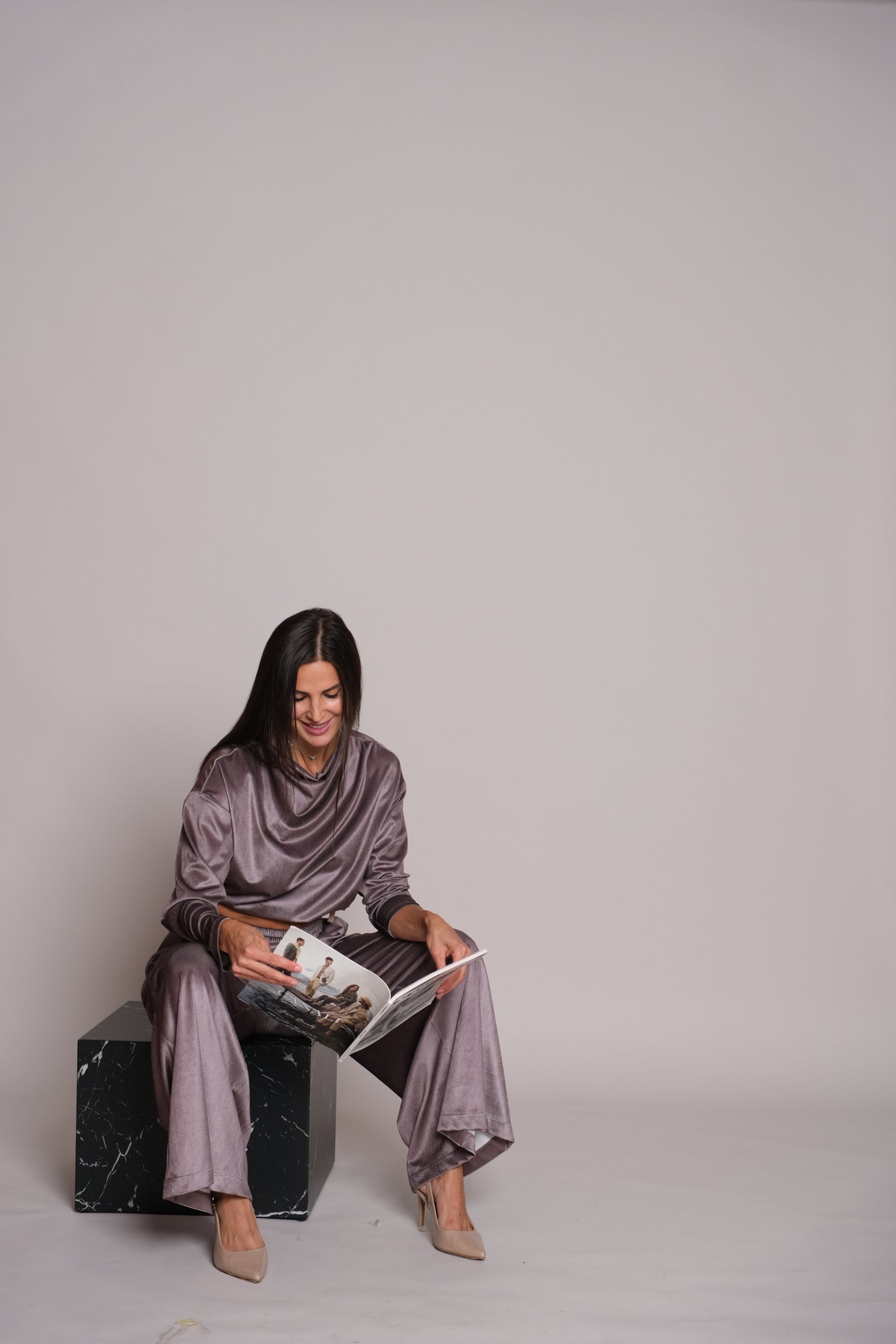 Влезте в света на ненатрапчивата елегантност с панталона Velora Trousers Lavender. Изработен от изключително мек плат, напомнящ кадифе, той съчетава луксозно усещане с ежедневна лекота. Широкият крачол пада свободно и създава едновременно комфорт и изискан силует. Скритата връзка на талията позволява индивидуално регулиране, без да нарушава чистите линии – практичност и стил в едно. Подходящи както за непринудена дневна визия, така и за по-елегантни вечерни комбинации, тези панталони въплъщават модерна универсалност със спортен акцент.