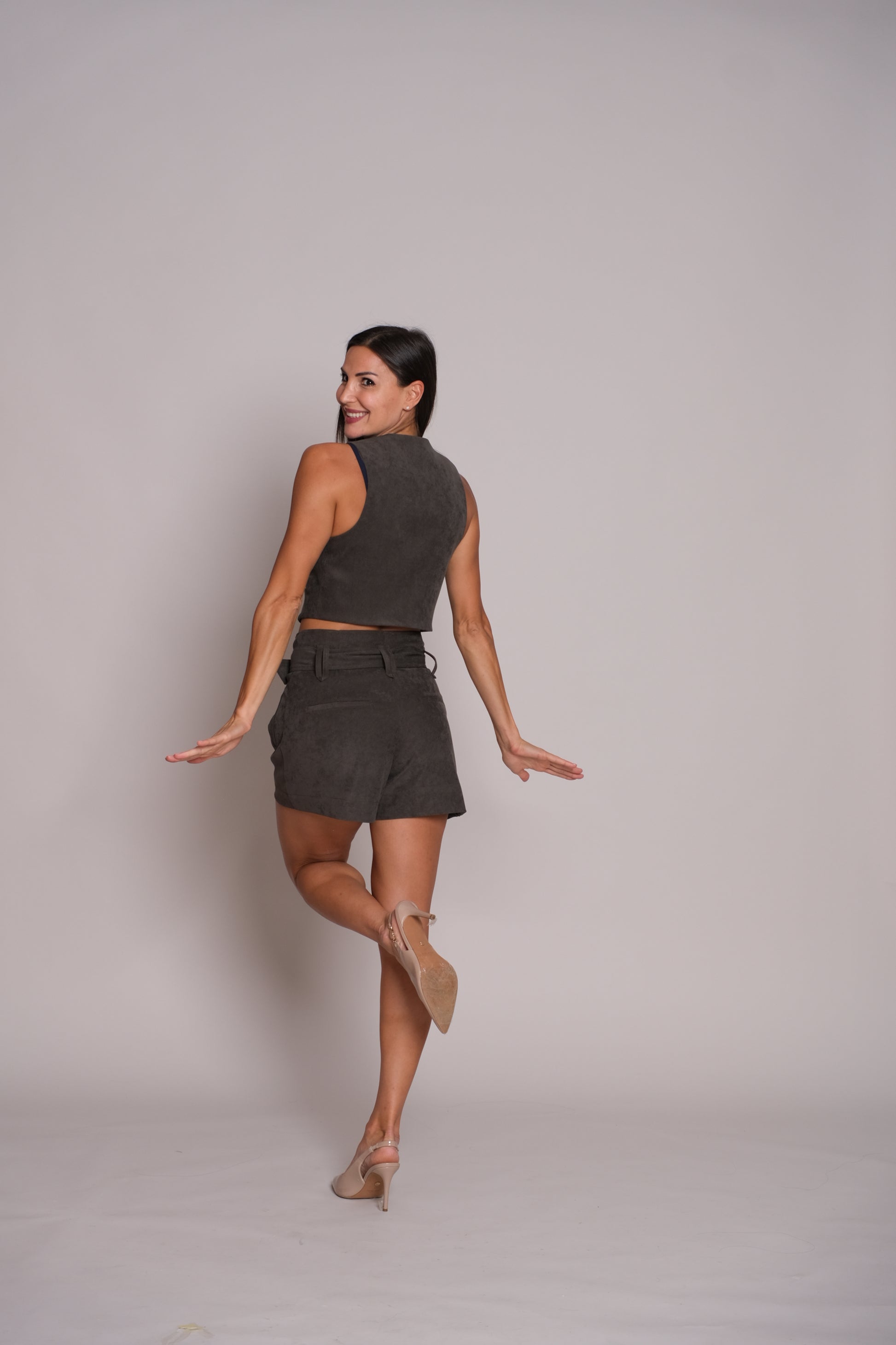 Discover refined comfort with our Breezy Tailored Army Shorts. Crafted from lightweight yet season-ready fabric, these shorts are designed to carry you seamlessly into autumn. The high-rise waist is accentuated with a matching belt, creating a flattering, tailored silhouette that remains effortlessly comfortable. With their versatile elegance, they’re equally suited for casual afternoons or elevated styling.