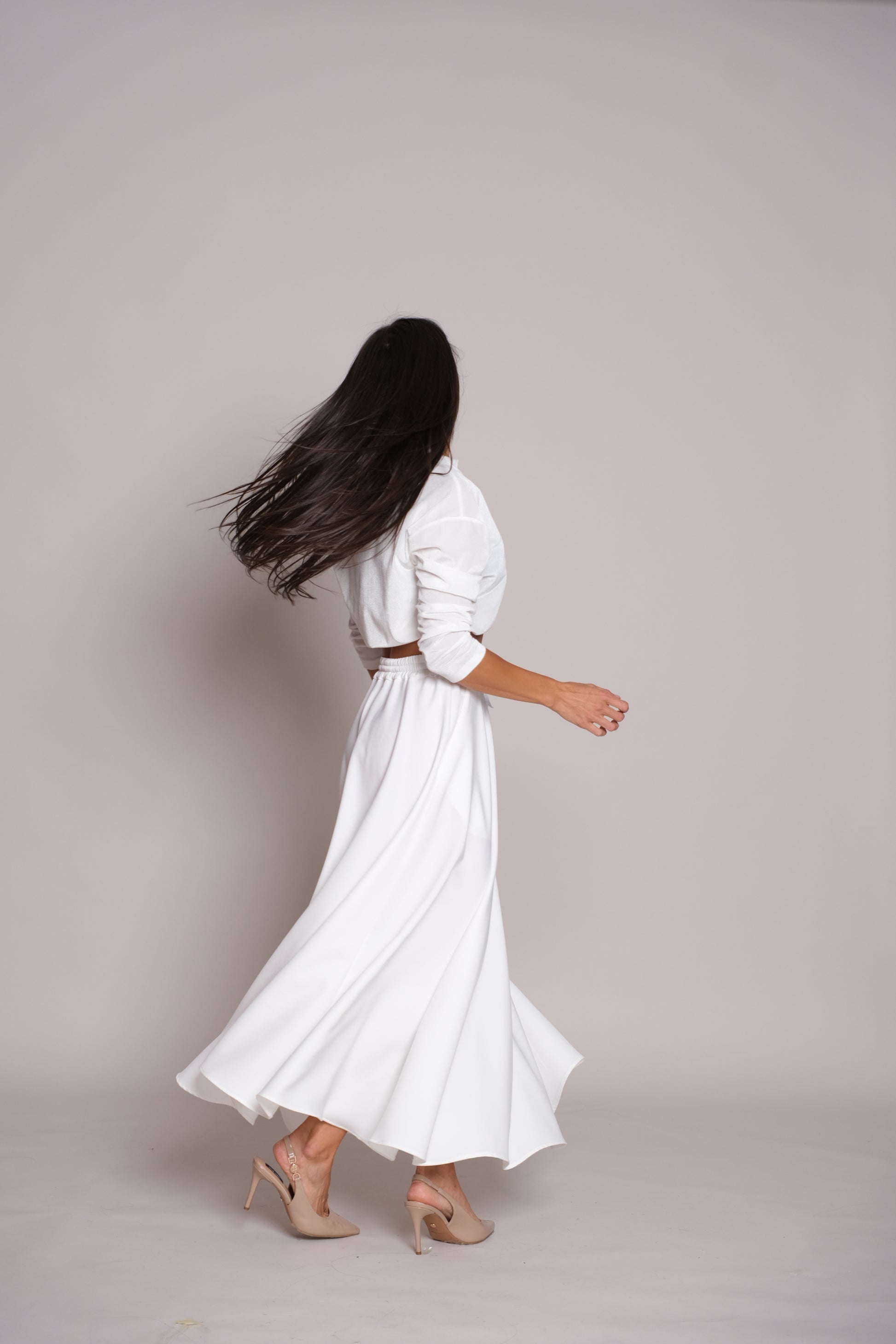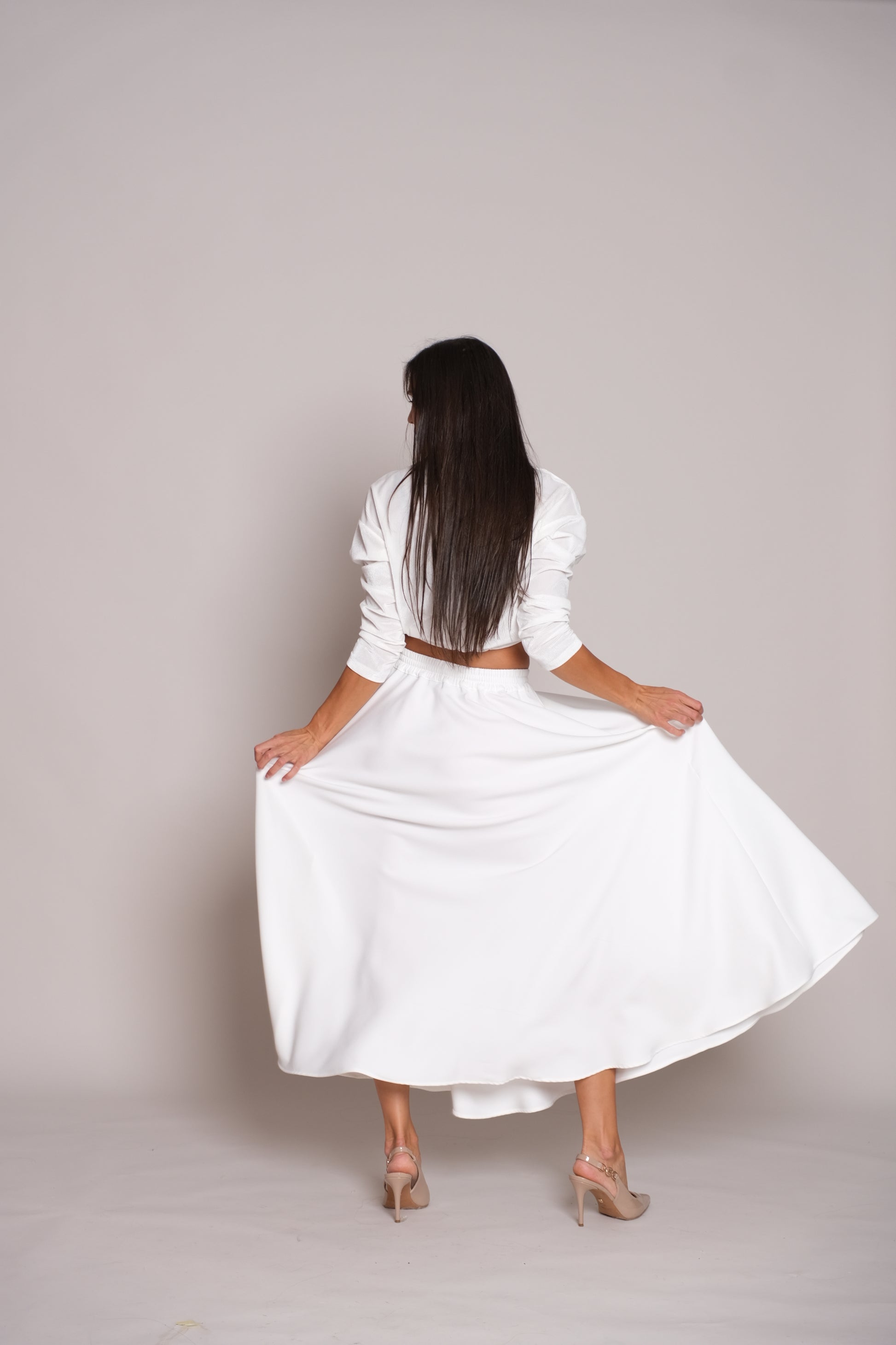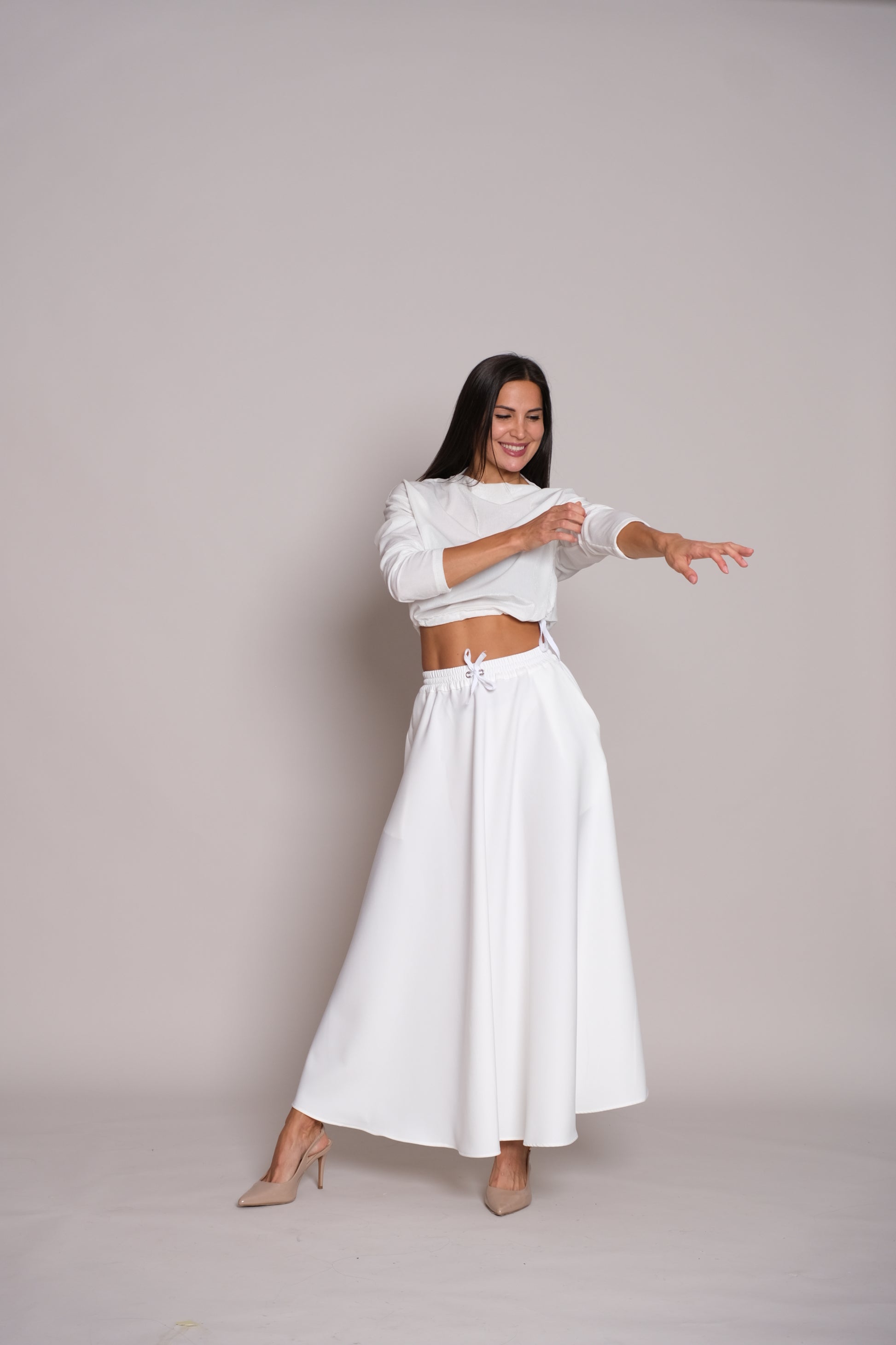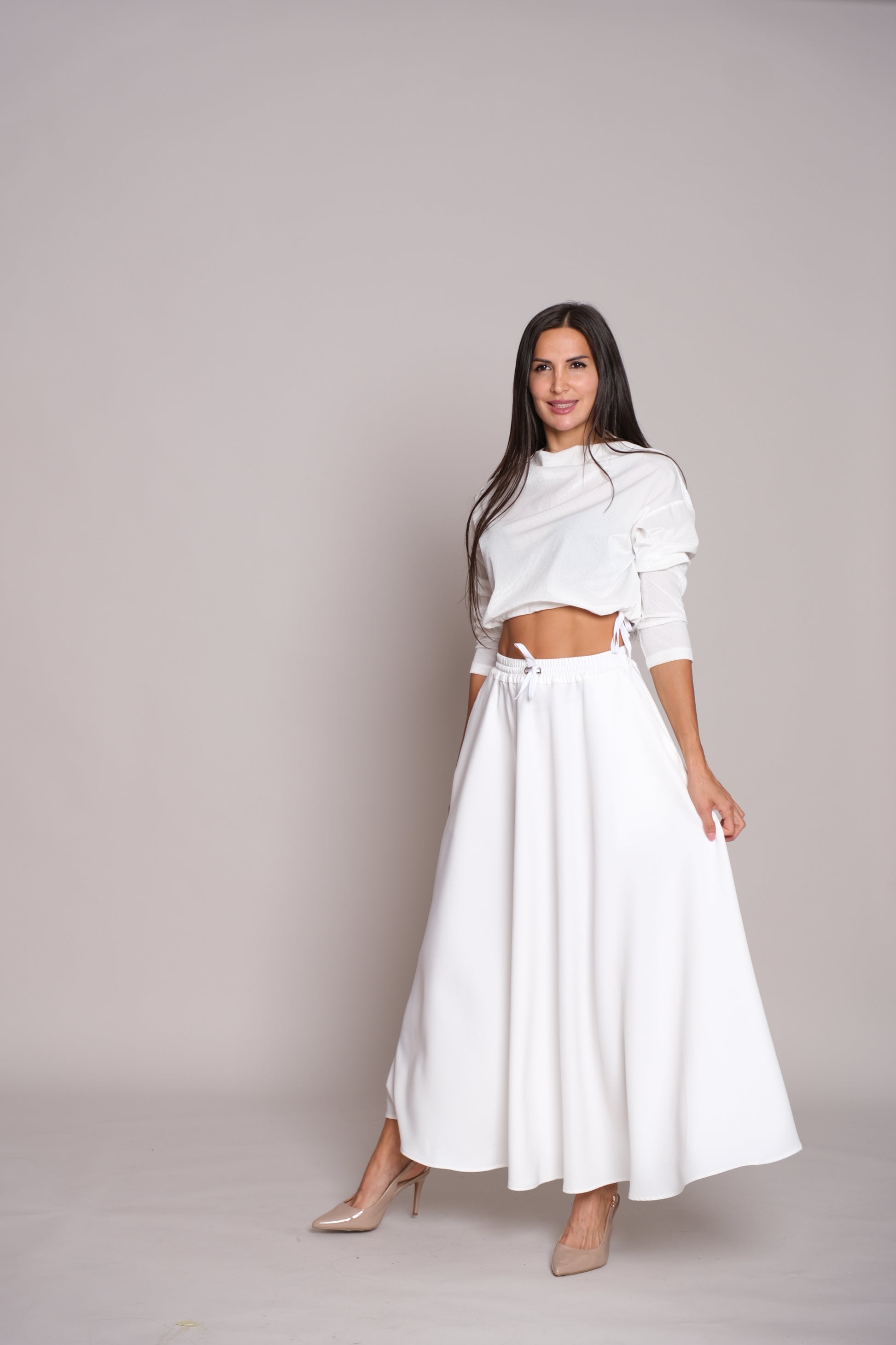 Graceful ease with the Auror Skirt White. Designed in a lightweight, flowing fabric, it moves effortlessly with every step, offering both comfort and poise. The airy construction creates a sense of freedom, while the refined cut elongates the silhouette with understated elegance. Perfectly versatile, it can be paired with casual tops for daytime ease or elevated pieces for evening sophistication.