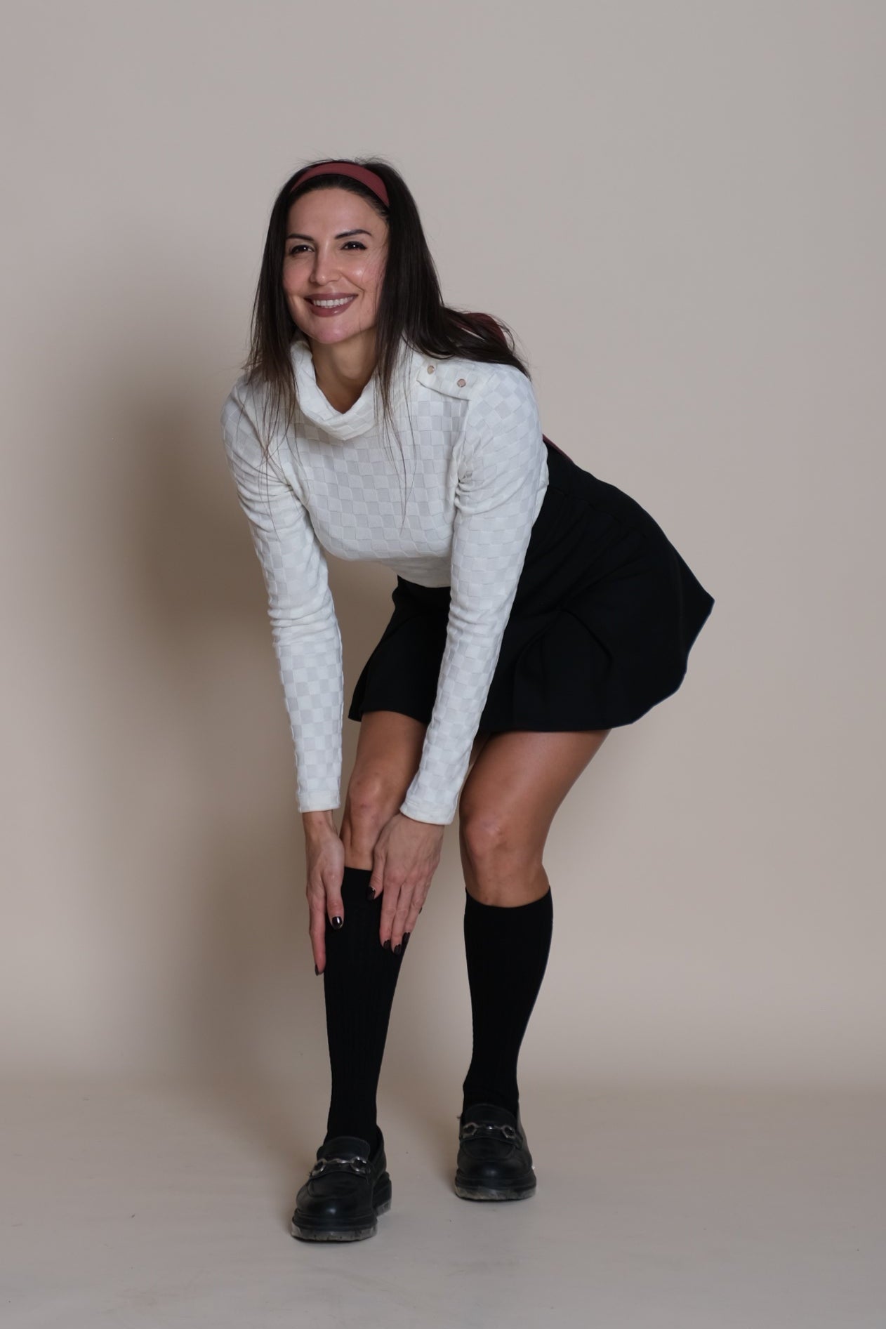 Introduce architectural structure and a defined textural accent to your cold-weather collection with the Geometrik Polo White. This polo blouse is engineered for a tight fit and an elegant, polished feel, making it ideal for fall and the colder winter days.
