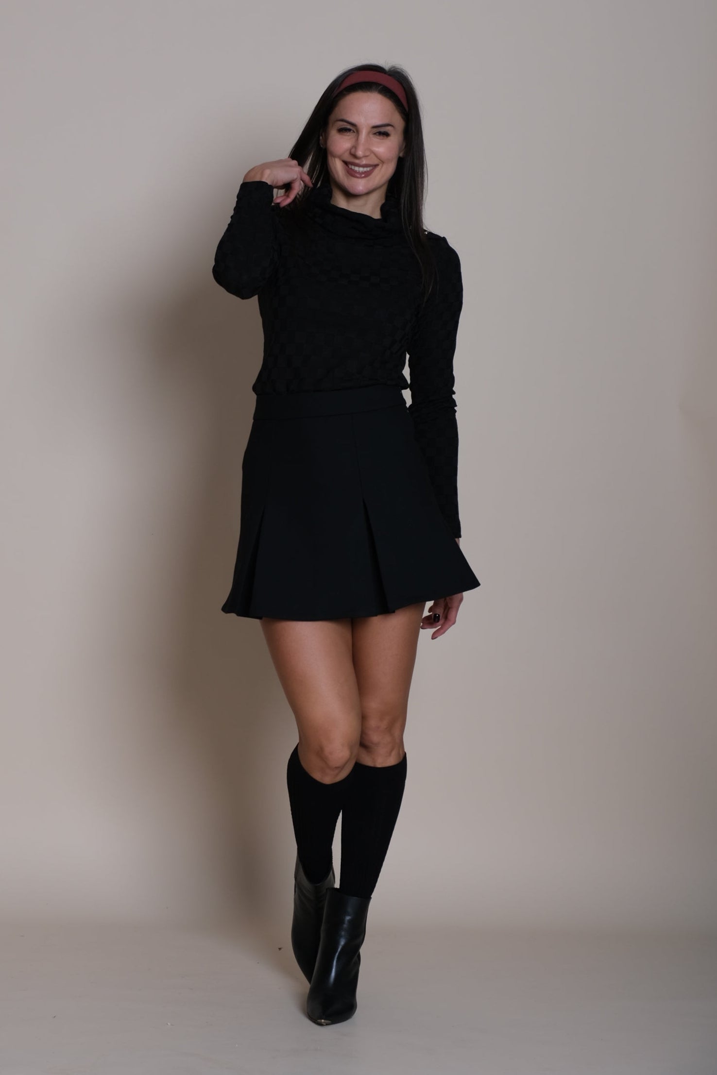 Introduce architectural structure and a defined textural accent to your cold-weather collection with the Geometrik Polo Black. This polo blouse is engineered for a tight fit and an elegant, polished feel, making it ideal for fall and the colder winter days.