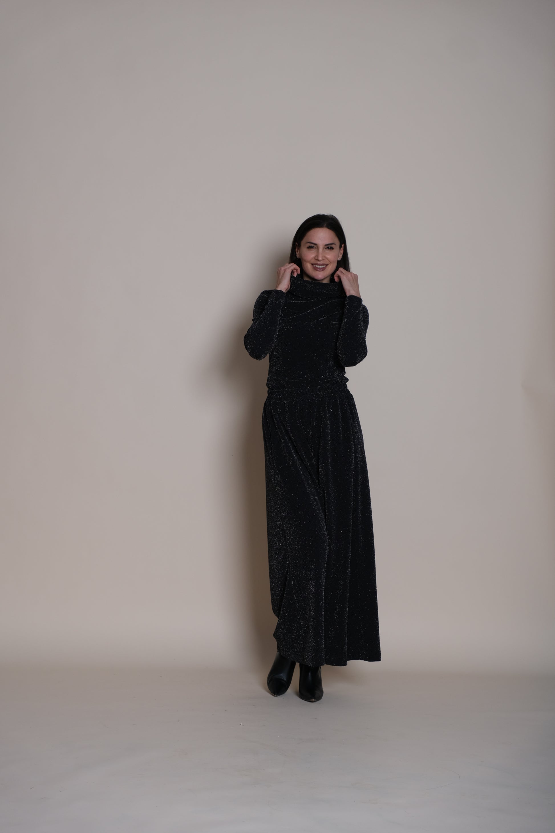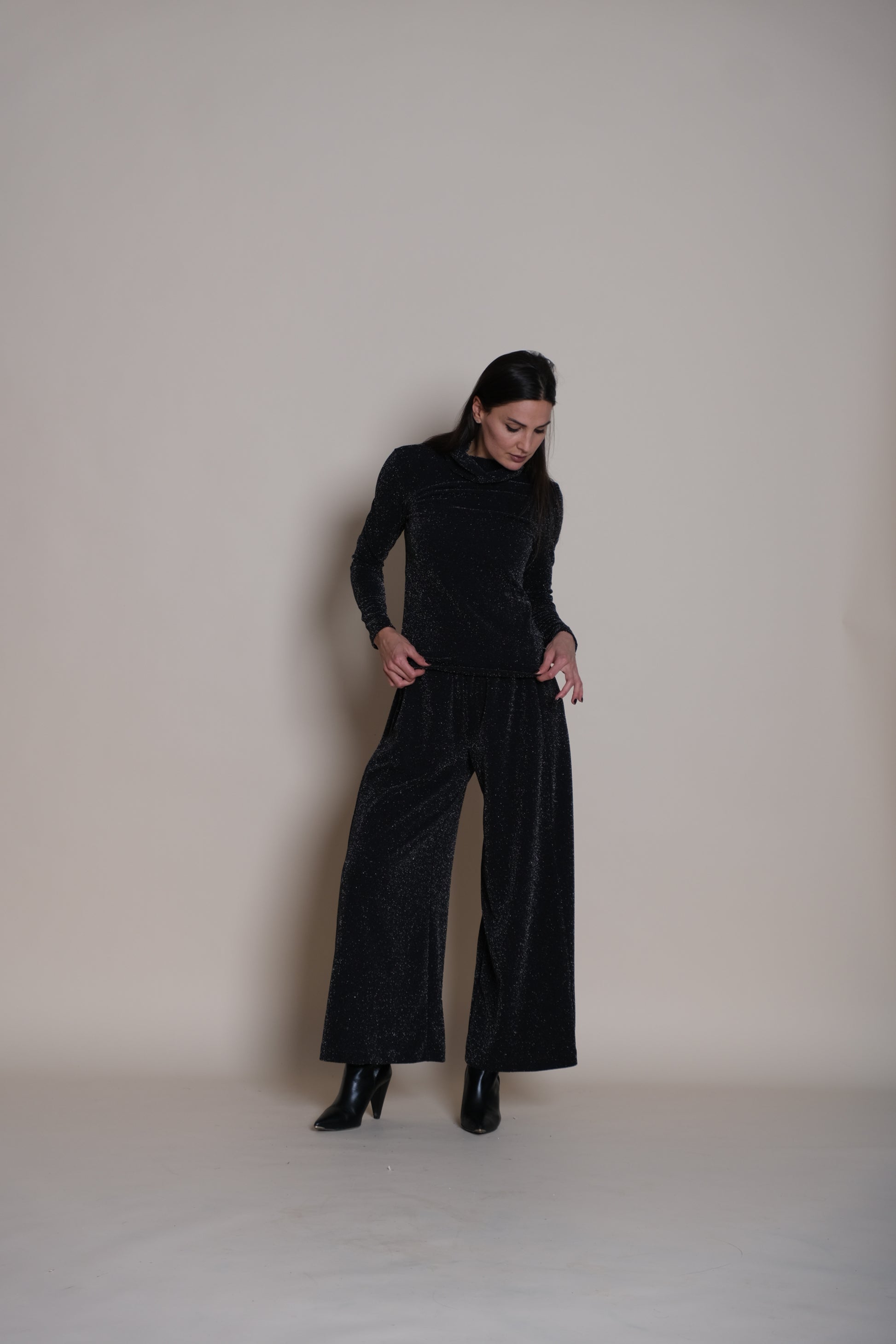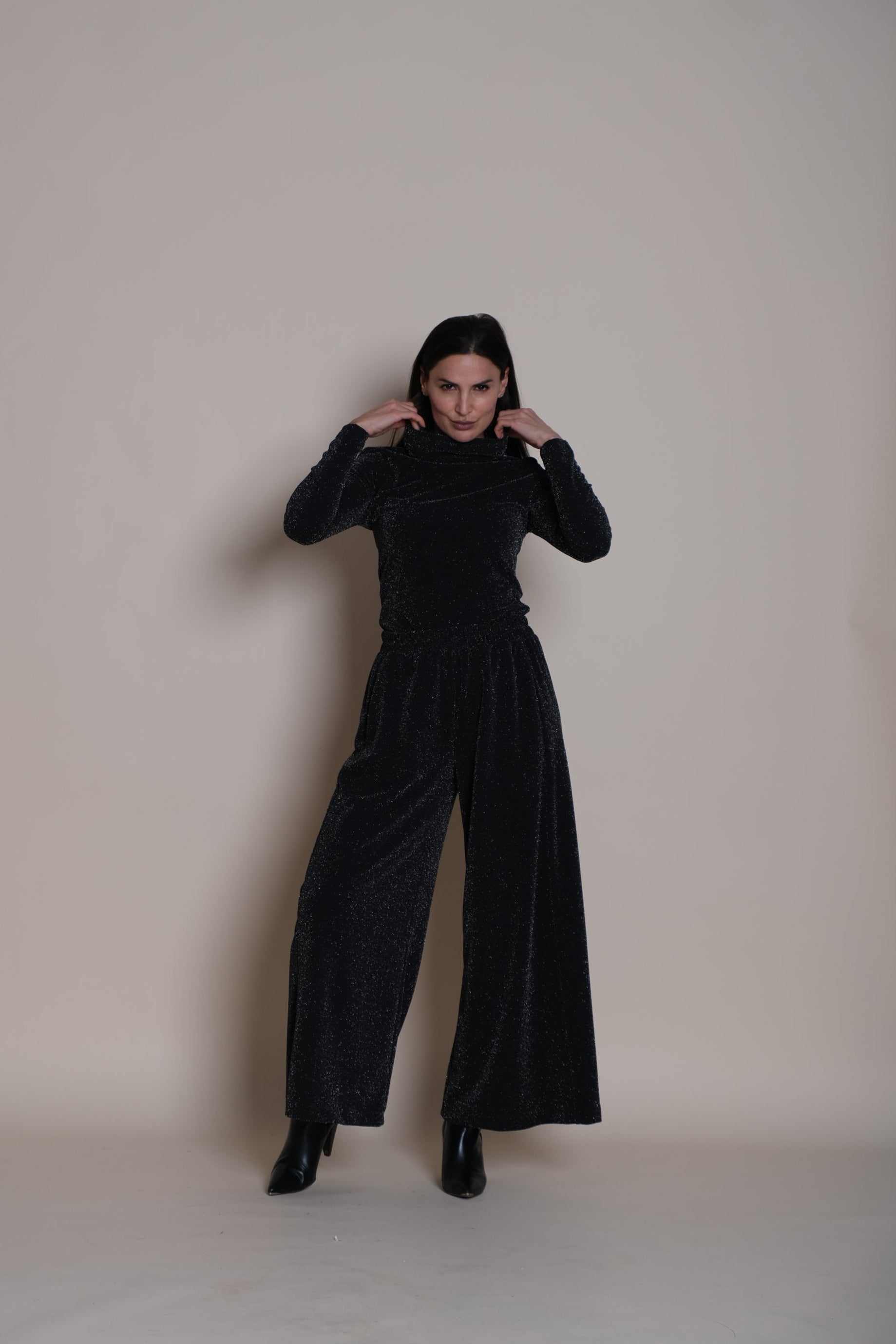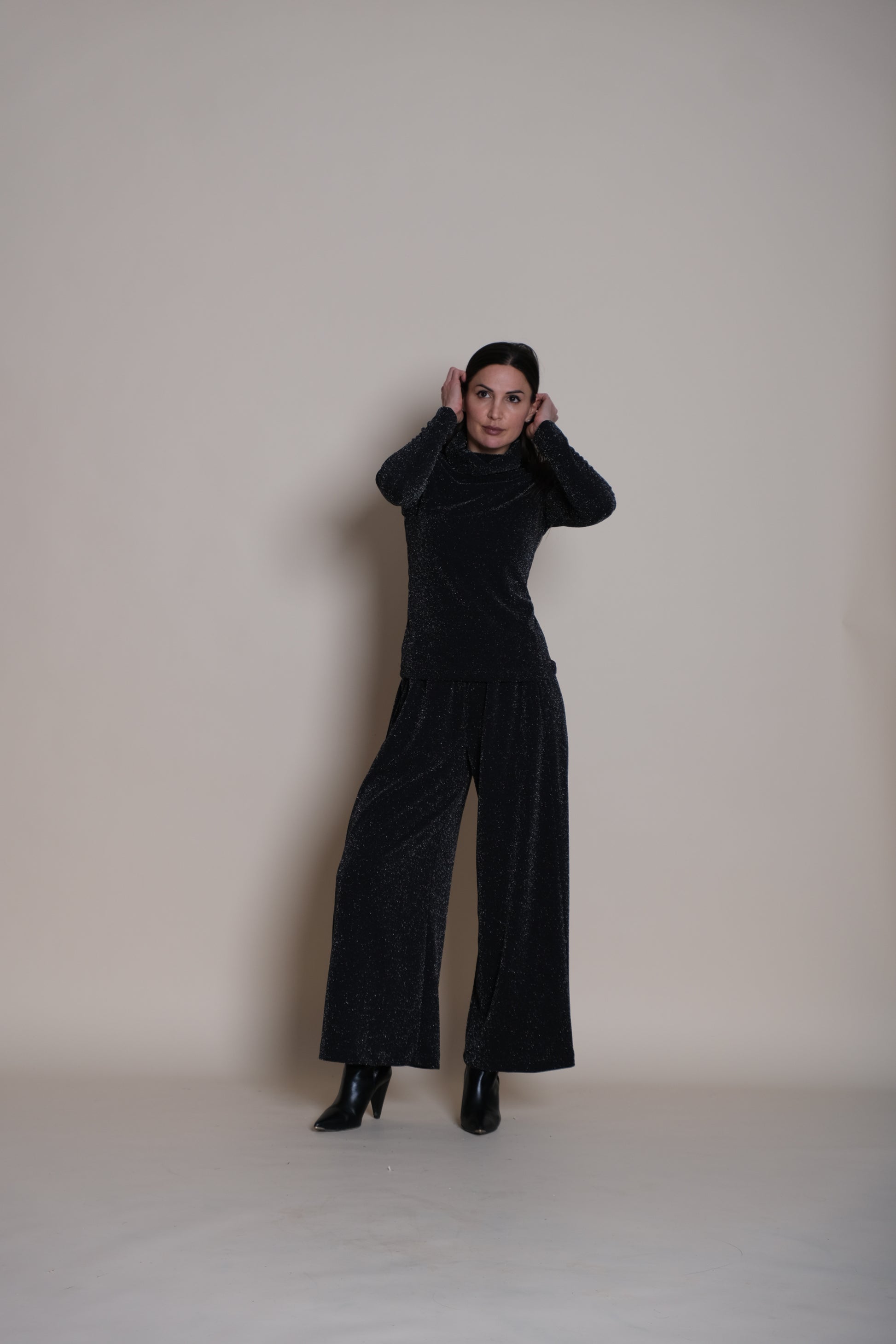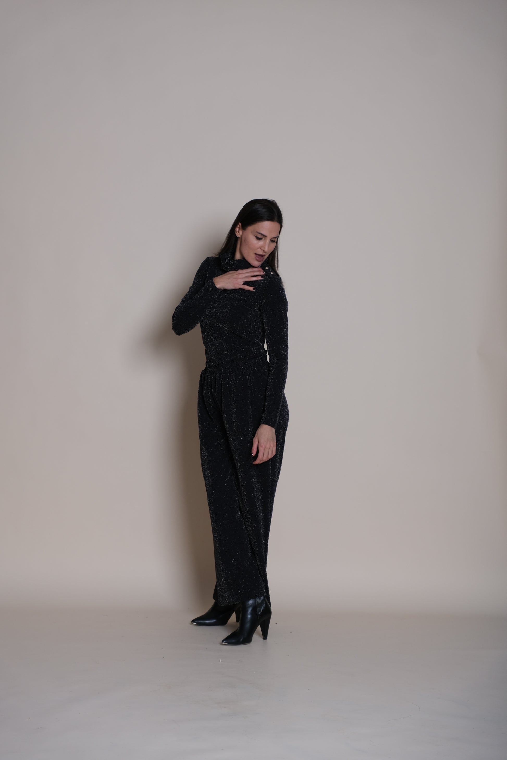 Infuse dynamic brilliance into your wardrobe with the Lumina Polo Black. Crafted from the same luxurious, soft-touch fabric as the Lumina Trousers, this top provides easy comfort while designed to sculpt and flatter your figure. The material is treated to deliver a beautiful, subtle sheen that catches the light without being overpowering, while the classic polo structure gives it a clean, sophisticated foundation.