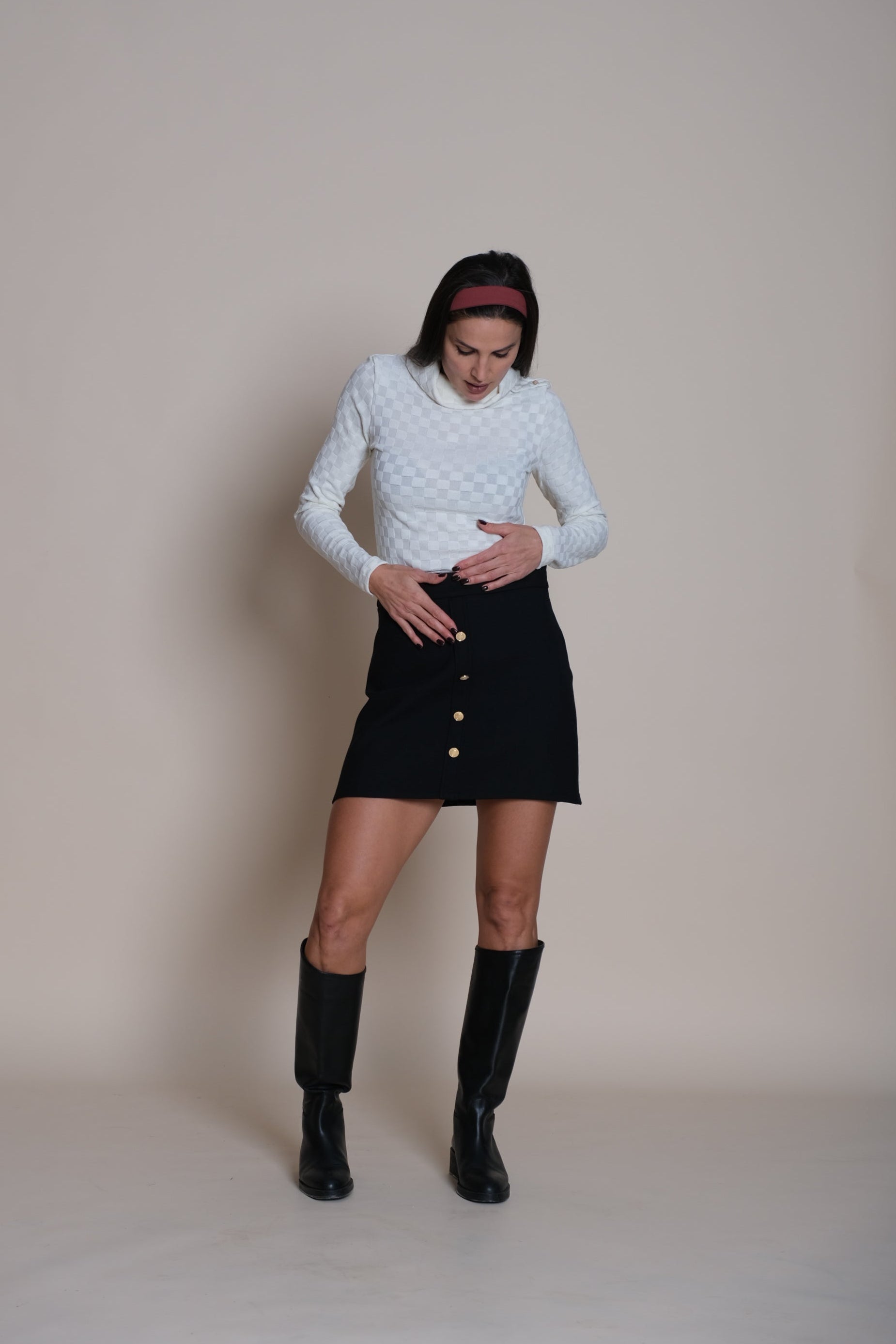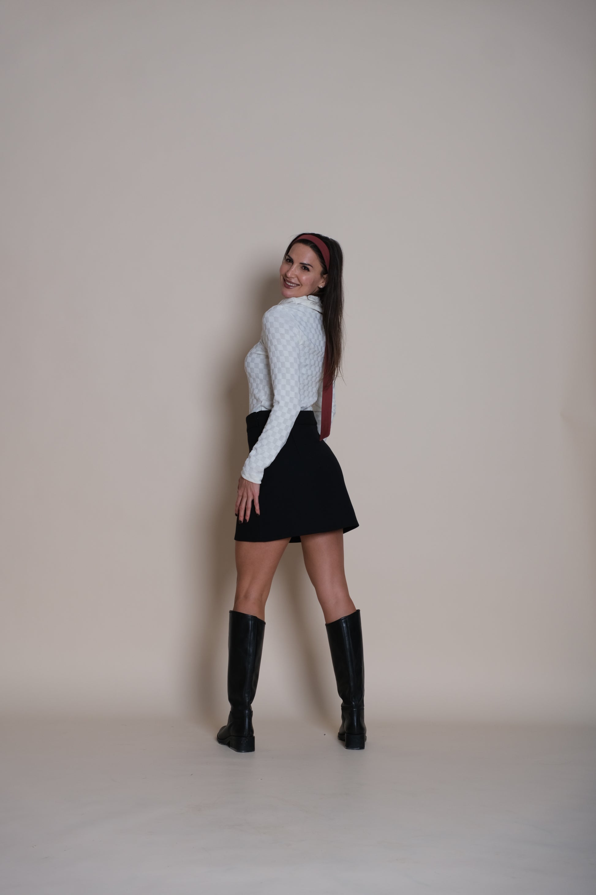 Introduce sharp structure and versatile polish to your wardrobe with the Noir Mini Skirt Black. Crafted from a substantial, thick material, this skirt is designed to maintain its clean, defined shape, offering a sophisticated feel that transcends seasons.