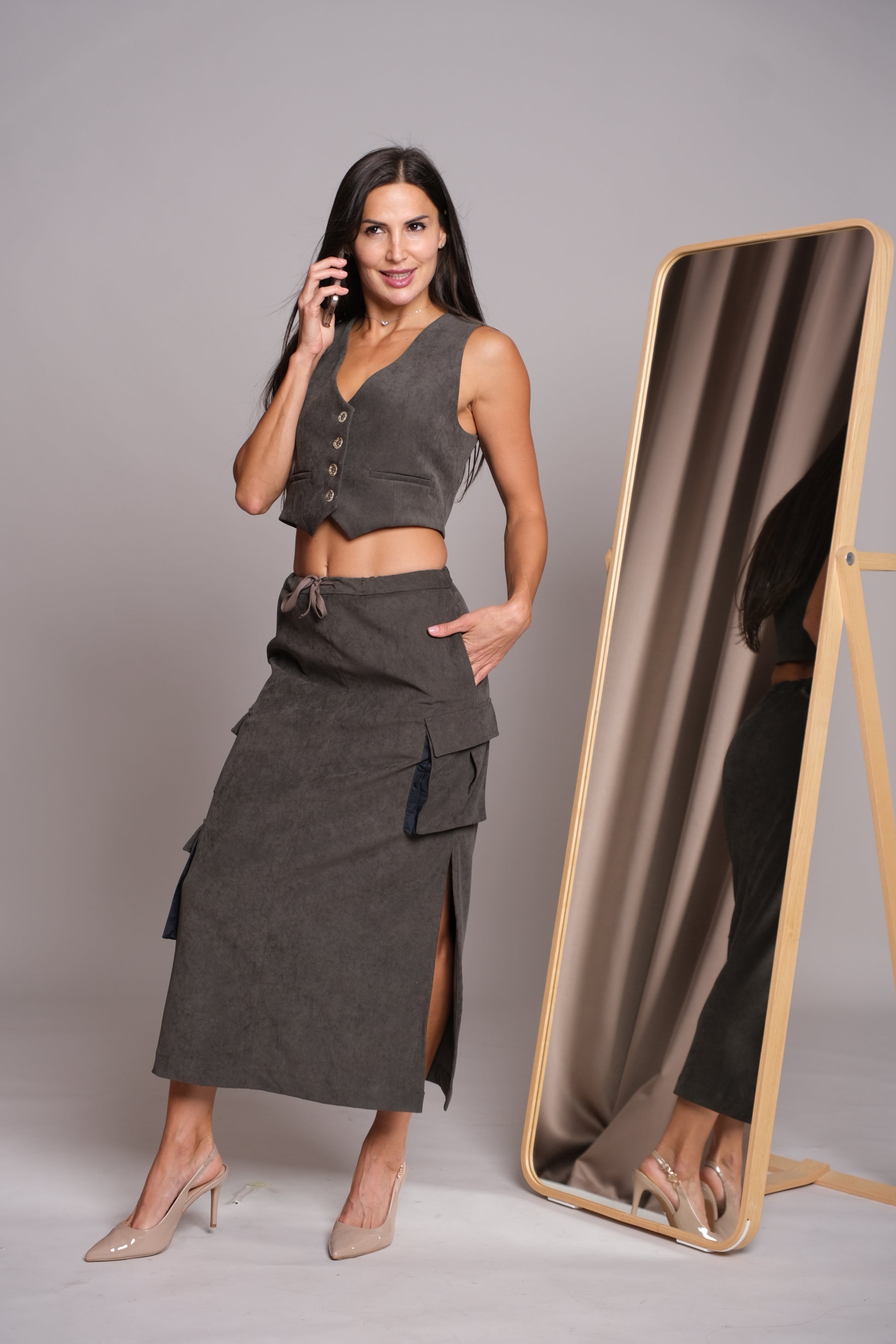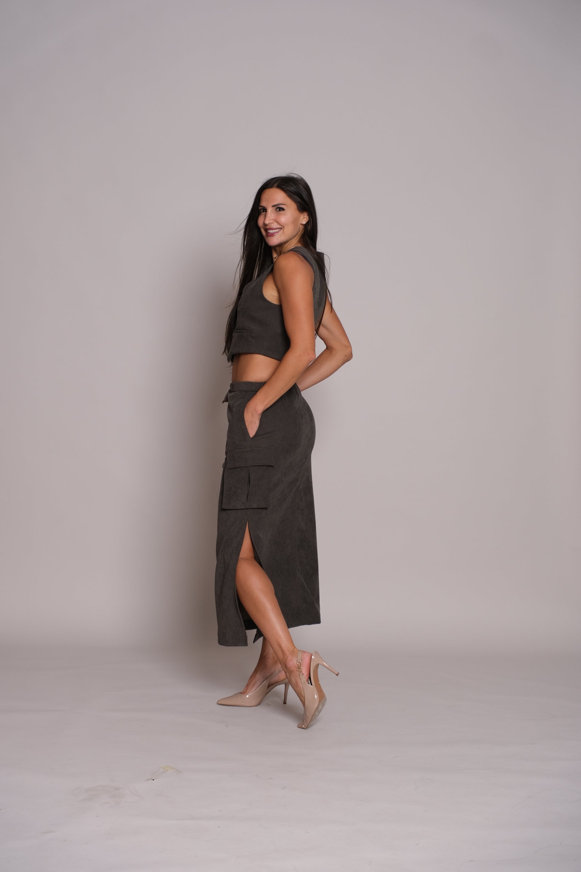 Discover effortless elegance with our Urban Grace Skirt Army. Designed to balance sporty ease with refined style, this skirt features a sleek high-rise waist and a left-side opening that adds movement and a touch of allure. Functional side pockets blend practicality with sophistication, while the lightweight, season-ready fabric ensures comfort from day to night. Perfect for both casual wear and elevated ensembles, this skirt is where versatility meets modern elegance.